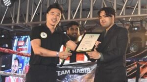 স্পোর্টস ডেস্ক : চারদিকে লাল, নীল, হলুদের আভা। পাঁচতারা হোটেল ওয়েস্টিনে এক হাজার স্কয়ারফিটের বলরুমের মাঝে সুসজ্জিত বক্সিং রিং। মঙ্গলবার (২০ জানুয়ারি) সেখানে তিন দেশের ২৪ জন ফাইটারের অংশগ্রহণে অনুষ্ঠিত হয় ডাবলহর্স…