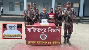 ডেস্ক নিউজ : মেহেরপুরের বাজিতপুর সীমান্ত দিয়ে অবৈধভাবে ভারতে স্বর্ণ পাচারের সময় ১০টি স্বর্ণের বারসহ দুই পাচারকারীকে আটক করেছে বর্ডার গার্ড বাংলাদেশ (বিজিবি)। আজ শনিবার (৩০ নভেম্বর) বিকেলে চুয়াডাঙ্গা ব্যাটালিয়নের অধিনায়ক…
