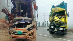 নরসিংদীতে বাস-কাভার্ডভ্যান মুখোমুখি সংঘর্ষে দুই চালক নিহত