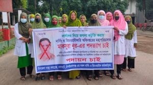আলি হায়দার রুমান ভোলাহাট (চাঁপাইনবাবগঞ্জ) প্রতিনিধি : নার্সিং মহাপরিচালকের পদত্যাগের দাবিতে মানববন্ধন ও বিক্ষোভ করেছে ভোলাহাট উপজেলা স্বাস্থ্য কমপ্লেক্সে কর্মরত নার্সরা। শনিবার বেলা ১১ টায় ভোলাহাট উপজেলা স্বাস্থ্য কমপ্লেক্সে চত্বরে…