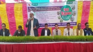 ভোলাহাটে ট্রান্সপ্লান্টারের মাধ্যমে বোরো চারা রোপণ উদ্বোধন