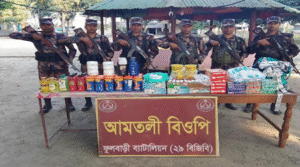 ফুলবাড়ী সীমান্তে বিজিবি অভিযান চালিয়ে ২ লক্ষ ৯৪ হাজার টাকার মাদক সহ মালামাল আটক করেন॥