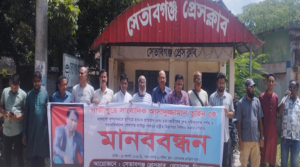 সাংবাদিক হত্যার প্রতিবাদে সেতাবগঞ্জ প্রেসক্লাবের মানববন্ধন