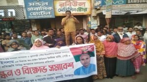 জেলা বিএনপি নেতার বিরুদ্ধে অপপ্রচারের প্রতিবাদে ফুলবাড়ীতে মানববন্ধন ও বিক্ষোভ সমাবেশ