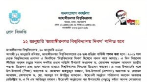 ডেস্ক নিউজ : জাহাঙ্গীরনগর বিশ্ববিদ্যালয়ের (জাবি) একটি প্রেস বিজ্ঞপ্তিতে মুজিব শতবর্ষের লোগো ব্যবহার করা হয়েছে। ওই লোগো ব্যবহার অনিচ্ছাকৃত ভুল ছিল উল্লেখ করে দুঃখ প্রকাশ করেছে সংশ্লিষ্টরা। এর আগে, শুক্রবার…