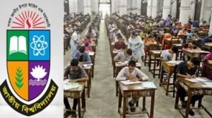 ঢাবিতে চাকরি পরীক্ষার নাম্বার সহ ফলাফল প্রকাশের দাবিতে অবস্থান ধর্মঘট
