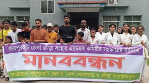 জয়পুরহাট জেলা ক্রীড়া সংস্থার এ্যাডহক কমিটি সংস্কারের দাবিতে মানববন্ধন