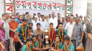 জয়পুরহাটে জেলা প্রশাসক ফুটবল টুর্নামেন্টের বিজয়ী দলকে সংবর্ধণা প্রদান