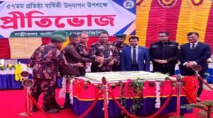 তানভীর চৌধুরী, নওগাঁ প্রতিনিধি : নওগাঁয় পত্নীতলা ব্যাটালিয়ন (১৪ বিজিবি) এর ৫৭তম প্রতিষ্ঠা বার্ষিকী উদযাপন উপলক্ষে কোর্য়াটার গার্ডে রেজিমেন্টাল পতাকা উত্তোলন ও অধিনায়কের বিশেষ দরবার শেষে কেক কাটা এবং প্রীতিভোজ…