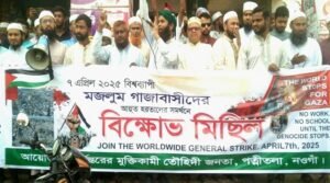 তানভীর চৌধুরী, নওগাঁ প্রতিনিধি : ফিলিস্তিনের গাজা ও রাফায় ইসরায়েলি বাহিনীর বর্বরোচিত হামলা ও গণহত্যার তীব্র নিন্দা ও প্রতিবাদ জানিয়ে নওগাঁর পত্নীতলায় সর্বস্তরের মুক্তিগামী তৌহিদী জনতার আয়োজনে নজিপুর বাস স্ট্যান্ডে…