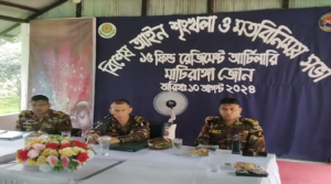 জসীম উদ্দিন জয়নাল,পার্বত্যাঞ্চল প্রতিনিধি : আইন-শৃঙ্খলা পরিস্থিতি স্বাভাবিক রাখতে ১৫ ফিল্ড রেজিমেন্ট আর্টিলারি মাটিরাঙ্গা জোন এর উদ্যােগে মাটিরাঙ্গা ও রামগড় উপজেলার সরকারি-বেসরকারি কর্মকর্তাদের নিয়ে বিশেষ আইন শৃঙ্খলা ও মতবিনিময় সভা অনুষ্টিত…