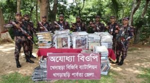 মাটিরাঙ্গা পলাশপুর বিজিবি জোনের অভিযানে ভারতীয় শাড়ী ও টি-শার্ট জব্দ