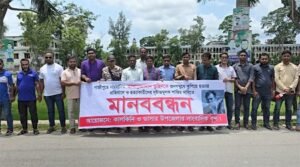 সাংবাদিক তুহিন হত্যার প্রতিবাদে কালকিনিতে মানববন্ধন