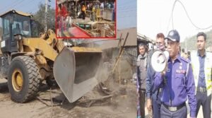 বগুড়ার শেরপুরে মহাসড়কে হাইওয়ে পুলিশের উচ্ছেদ অভিযান