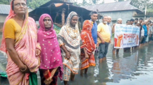 নেত্রকোণায় জলাবদ্ধতায় নাকাল পৌরবাসী, পানি নিস্কাসনের দাবিতে মানববন্ধন