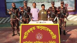 আলমগীর মানিক,রাঙামাটি : রাঙামাটির বরকলের ছোটহরিণা বাজার এলাকা থেকে অনুপ্রবেশের অপরাধে দুইজন ভারতীয় নাগরিককে আটক করেছে বর্ডার গার্ড বাংলাদেশ (বিজিবি)। বৃহস্পতিবার মধ্যরাতে এ রির্পোট লেখার সময় বরকল থানার অফিসার ইনচার্জ…