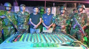 স্পোর্টস ডেস্ক : বৃহস্পতিবার (৩ অক্টোবর) রাত সাড়ে ১২ টার দিকে সেনাবাহিনীর নেতৃত্বে যৌথ বাহিনী এ অভিযান পরিচালনা করে। এ সময় তার বাড়ি থেকে একটি বিদেশি এয়ারগান, ১৪টি দেশীয় তলোয়ার, একটি…
