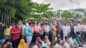 আশুলিয়া (ঢাকা) প্রতিনিধি: ঢাকার আশুলিয়ায় বাইপাইল বাসস্ট্যান্ড এলাকার সাধারণ ব্যবসায়ীর জানমাল রক্ষা এবং সকল ধরণের চাঁদাবাজী বন্ধের দাবী জানিয়ে মাথায় কাফনের কাপড় প্যাঁচিয়ে মানববন্ধন করেছেন সাধারণ ব্যবসায়ী ও পরিবহণ শ্রমিকরা।…