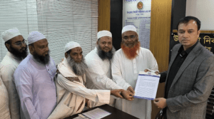 হেফাজতে নেতাকে হত্যা মামলার আসামী করায় প্রশাসন বরাবর স্মারকলিপি