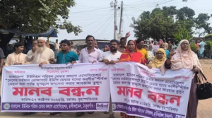 রাণীশংকৈলে বহিষ্কার ঠেকাতে ইউপি সদস্যদের মানববন্ধন ।