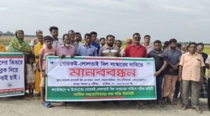রানীশংকৈল প্রতিনিধি : পনেরো হাজার হেক্টর জমি বাঁচাতে ঠাকুরগাঁওয়ের রাণীশংকৈলে লোলতাই বিল সংস্কারের দাবিতে মানববন্ধন অনুষ্ঠিত হয়েছে। রবিবার(২৫ মে) বিকেলে উপজেলার নন্দুয়ার ইউনিয়নের জওগাঁ গোরকই- লোলতাই বিলের সামনে মানববন্ধনটি অনুষ্ঠিত…