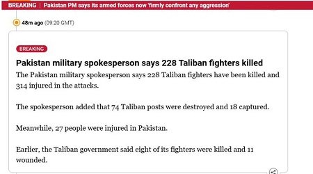 পাকিস্তানের হামলায় ২২৮ তালেবান যোদ্ধা নিহতের দাবি