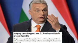 আন্তর্জাতিক ডেস্ক : ইউক্রেনে সামরিক অভিযানের জেরে রুশ অপরিশোধিত তেল আমদানিতে নিষেধাজ্ঞাসহ রাশিয়ার বিরুদ্ধে ইউরোপীয় ইউনিয়নের (ইইউ) নতুন নিষেধাজ্ঞা প্যাকেজকে হাঙ্গেরি সমর্থন দেবে না বলে জানিয়েছেন দেশটির প্রধানমন্ত্রী ভিক্টর অরবান। (more…)