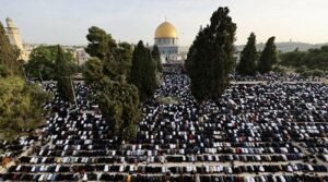 ডেস্কনিউজঃ রমজানের প্রতিটি জুমায় বাঁধভাঙা সমাবেশের পর পবিত্র ঈদুল ফিতরের নামাজের জামাতেও সেই ধারাবাহিকতা রক্ষা করেছেন ফিলিস্তিনিরা। সোমবার পূর্ব আল কুদসের (জেরুসালেম) পুরাতন শহরে ইসরাইলি পুলিশের সরব উপস্থিতি সত্ত্বেও ঈদের…