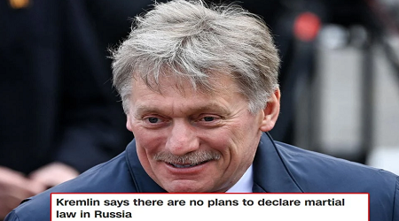 আন্তর্জাতিক ডেসক্ : রাশিয়ার অভ্যন্তরীণ অবস্থা স্থিতিশীল রয়েছে বলে জানিয়েছেন ক্রেমলিনের মুখপাত্র দিমিত্রি পেসকভ। বুধবার সংবাদ সম্মেলনে পুতিনের এই ঘনিষ্ঠ সহযোগী আরও জানান, রাশিয়ায় ‘মার্শাল ল’ জারির কোনো সম্ভাবনা নেই। সাংবাদিকরা জানতে read more