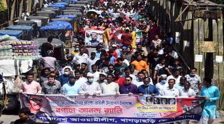 জসীম উদ্দিন জয়নাল,পার্বত্যাঞ্চল প্রতিনিধি : “সংগ্রাম,উন্নয়ন ও অর্জনের গৌরবদীপ্ত পথচলার বাংলাদেশ আওয়ামী লীগ” এই প্রতিপাদ্যকে সামনে রেখে এবং “দুর্যোগ দুর্বিপাকে, আওয়ামী লীগ সর্বদা গণমানুষের পাশে” এই স্লোগানে সারাদেশের ন্যায় খাগড়াছড়িতেও বাংলাদেশ