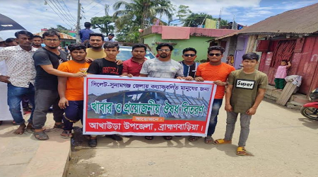 বাদল আহাম্মদ খান ব্রাহ্মণবাড়িয়া জেলা প্রতিনিধি : বন্যাকবলিত সিলেটের সুনামগঞ্জ পানিবন্দিদের পাশে দাঁড়িয়েছে ব্রাহ্মণবাড়িয়া আখাউড়ার কিছু তরুণ ব্যবসায়ী ও যুবকরা। বানভাসী ৭০০ মানুষের জন্য কাঠাল, মুড়ি, চিড়া, চিনি, বিস্কুট,লাইটার, মোমবাতি, বিস্কুট পানির