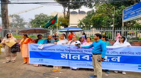 জালাল আহমদ,ঢাকা বিশ্ববিদ্যালয় প্রতিনিধি : ঢাকা বিশ্ববিদ্যালয় সহ বিভিন্ন বিশ্ববিদ্যালয়ে শিক্ষার্থীদের প্রতি যৌন-হয়রানির ঘটনার প্রতিবাদে আজ ২২ ফেব্রুয়ারি বৃহস্পতিবার বিকালে রাজধানীর শাহবাগে জাতীয় জাদুঘরের সামনে বাংলাদেশ মহিলা পরিষদের উদ্যোগে মানববন্ধন কর্মসূচী read more