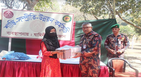 জসীম উদ্দিন জয়নাল,পার্বত্যাঞ্চল প্রতিনিধি : শান্তি, সম্প্রীতি ও উন্নয়নের ধারাবাহিকতায় খাগড়াছড়ি জেলার মাটিরাঙ্গা উপজেলার যামিনীপাড়া জোন (২৩ বিজিবি) কর্তৃক দুস্থ অসহায় গরীব পরিবারকে নতুন ঘর হস্তান্তরসহ পাহাড়ি-বাঙালিদের নগদ অর্থ বিতরণ করেছে যামিনীপাড়া