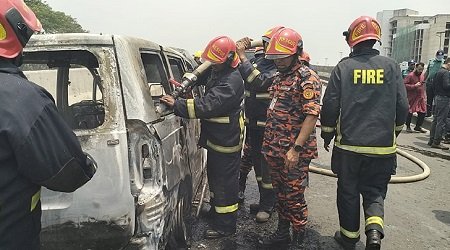 ডেস্ক নিউজ : রাজধানীর হযরত শাহজালাল আন্তর্জাতিক বিমানবন্দরের সামনের ফ্লাইওভারে একটি প্রাইভেটকার আগুন লেগে পুড়ে গেছে। বৃহস্পতিবার দুপুরে হঠাৎ এ অগ্নিকাণ্ডের ঘটনা ঘটে। ফায়ার সার্ভিস অ্যান্ড সিভিল ডিফেন্স কন্ট্রোল রুমের ডিউটি read more