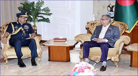 ডেস্ক নিউজ : রাষ্ট্রপতি মো. সাহাবুদ্দিনের সঙ্গে বিদায়ী সাক্ষাৎ করেছেন বিমান বাহিনী প্রধান এয়ার চীফ মার্শাল শেখ আব্দুল হান্নান। এসময় রাষ্ট্রপতির সহধর্মিনী ড. রেবেকা সুলতানা উপস্থিত ছিলেন। পরে রাষ্ট্রপতির প্রেস read more