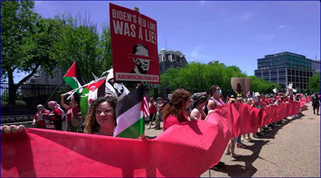 আন্তর্জাতিক ডেস্ক : মার্কিন প্রেসিডেন্টের দফতর হোয়াইট হাউসের কাছে চলমান গাজা যুদ্ধের বিরুদ্ধে বিক্ষোভ করেছেন হাজার হাজার মানুষ। ‘রেড লাইন’ নামের এই বিক্ষোভ স্থানীয় সময় শনিবার অনুষ্ঠিত হয়। বিক্ষোভকারীরা ফিলিস্তিনের read more