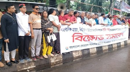 ডেস্ক নিউজ : ঢাকায় জাতীয় প্রেসক্লাবের সামনে বিক্ষোভ করছেন বিভিন্ন গণমাধ্যমের সাংবাদিকরা। আজ শনিবার সকালে বাংলাদেশ ফেডারেল সাংবাদিক ইউনিয়ন (বিএফইউজে) ও ঢাকা সাংবাদিক ইউনিয়ন (ডিইউজে) এ বিক্ষোভ কর্মসূচির আয়োজন করেছে। read more