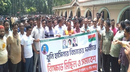 শিমুল দেব,উলিপুর (কুড়িগ্রাম) প্রতিনিধি : আওয়ামী লীগ সভাপতি ও সাবেক প্রধানমন্ত্রী শেখ হাসিনার বিচারের দাবিতে কুড়িগ্রামের উলিপুরে বিক্ষোভ মিছিল ও সমাবেশ করেছে বিএনপি ও অঙ্গসংগঠনের নেতাকর্মীরা। বুধবার (১৪ আগস্ট) দুপুরে read more