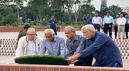 ডেস্ক নিউজ : স্বরাষ্ট্র ও কৃষি উপদেষ্টা লেফটেন্যান্ট জেনারেল (অব.) জাহাঙ্গীর আলম চৌধুরীসহ অন্তর্বর্তী সরকারের নতুন চার উপদেষ্টা জাতীয় স্মৃতিসৌধে পুষ্পস্তবক অর্পণের মাধ্যমে মহান মুক্তিযুদ্ধের বীর শহীদদের প্রতি শ্রদ্ধা নিবেদন read more
