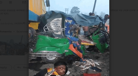 নোয়াখালী প্রতিনিধি : নোয়াখালীর সুবর্ণচর উপজেলায় পিকআপ ভ্যান ও সিএনজিচালিত অটোরিকশার মুখোমুখি সংঘর্ষে এক যুবক নিহত হয়েছেন। এ ছাড়া সিএনজি ড্রাইভারসহ দুজন আহত হয়েছেন। নিহত মো.ইয়ামিন ওরফে হেনজু (২৫)। তিনি read more