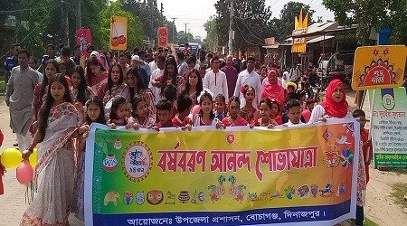 মোঃ আশিকুর ইসলাম ,বোচাগঞ্জ(দিনাজপুর)প্রতিনিধি : দিনাজপুরের বোচাগঞ্জ উপজেলা প্রশাসন আয়োজিত আনন্দ শোভাযাত্রা ও ৫ দিন ব্যাপী বৈশাখী মেলার শুভ উদ্বোধন করা হয়েছে। ১৪ এপ্রিল সোমবার সকাল ৯টায় উপজেলা শিল্পকলা চত্বর read more