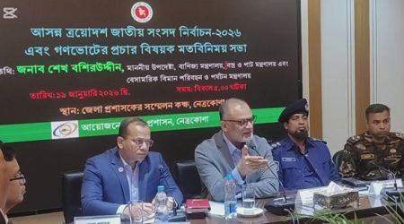 শান্তা ইসলাম জেলা প্রতিনিধি : নেত্রকোণা জেলা প্রশাসকের সম্মেলন কক্ষে ত্রয়োদশ জাতীয় সংসদ নির্বাচন ও গণভোট সম্পর্কিত মতবিনিময় সভা ১৯ জানুয়ারি অনুষ্ঠিত হয়েছে। নেত্রকোণা জেলা প্রশাসক মোঃ সাইফুর রহমানের সভাপতিত্বে read more