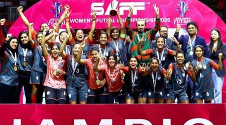 স্পোর্টস ডেস্ক : প্রথমবারের মতো আয়োজিত সাফ নারী ফুটসাল টুর্নামেন্টে বাংলাদেশের নারী দল ইতিহাস সৃষ্টি করে অপরাজিত চ্যাম্পিয়ন হয়। সাবিনা খাতুনের নেতৃত্বে দলটি দক্ষিণ এশিয়ার সেরাদের মুকুট মাথায় নিয়ে বৃহস্পতিবার (২৯ read more