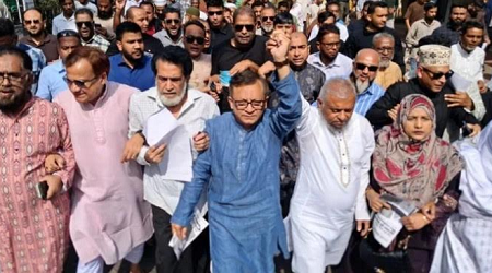 তোবারক হোসেন খোকন দুর্গাপুর (নেত্রকোনা) প্রতিনিধি : বাংলাদেশ খেলাফত মজলিসের আমির মাওলানা মামুনুল হক বলেছেন, দেশ বর্তমানে দুইটি ভাগে বিভক্ত, একদিকে এগারোটি দল আর অন্য দিকে একটি দল। গুন্ডা-মান্তান দিয়ে read more