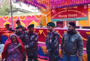 চলমান তীব্র শীতে বিপর্যস্থ স্থানীয় শীতার্ত এবং অসহায় মানুষের মাঝে দিনাজপুর সেক্টরের আওতাধীন ফুলবাড়ী ব্যাটালিয়ন (২৯ বিজিবি) কর্তৃক শীতবস্ত্র বিতরণ ও বিনামূল্যে চিকিৎসা সেবা প্রদান কর্মসূচি পালিত হচ্ছে। গতকাল সোমবার ফুলবাড়ী ব্যাটালিয়ন (২৯ বিজিবি) এর অধীনস্থ দিনাজপুর জেলার ফুলবাড়ী উপজেলার আওতাধীন আমড়া বিওপি’র দায়িত্বপূর্ণ এলাকার ৩নং কাজিহাল ইউনিয়নের জামগ্রামের মিরপুর উচ্চ বিদ্যালয় মাঠে সীমান্ত এলাকায় বসবাসরত স্থানীয় ৩০০ জন শীতার্ত ও অসহায় মানুষের মাঝে ৩০০ টি শীতবস্ত্র (কম্বল) বিতরণ করা হয়েছে।