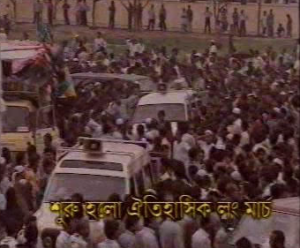 লংমার্চ পার্বত্য এলাকায় প্রবেশ করলে মোড়ে মোড়ে বাঙালীরা পাহাড়ী লেবুর শরবত, লেবু, কলা, কাঁচা আম দিয়ে লংমার্চকারীদের ক্ষুধা তৃষ্ণা মেটানোর জন্য আকুল আগ্রহে অপেক্ষা করছিল। সে এক অভূতপূর্ব দৃশ্য। ৭ দলীয় জোট নেত্রী বেগম খালেদা জিয়া যে স্থানে পার্বত্য চুক্তির আওতায় শান্তিবাহিনী অস্ত্র সমর্পনের নাটক করেছিল ,সেই খাগড়ছড়ি স্টেডিয়ামে লাখো লাখো লোকের সমাবেশে বক্তব্য রাখেন।