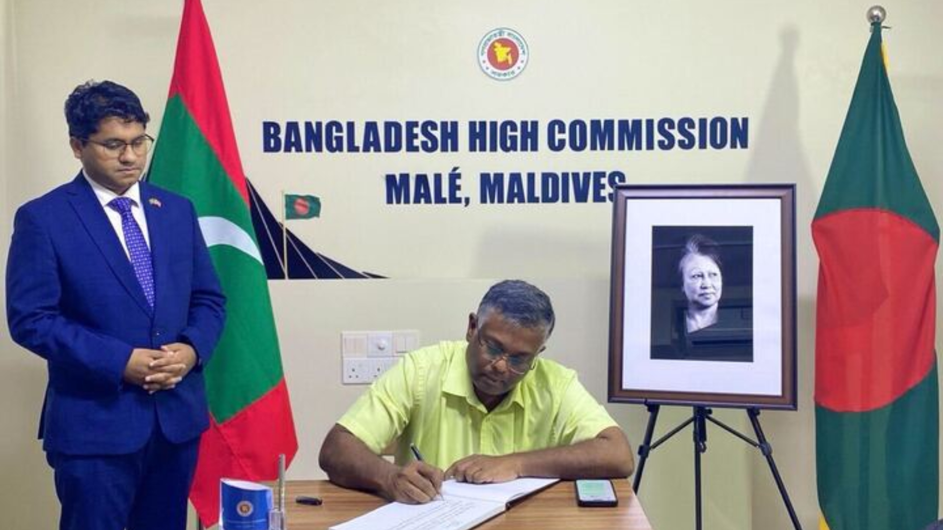 বেগম খালেদা জিয়ার প্রতি শ্রদ্ধা জানাতে সর্বস্তরের মানুষের জন্য প্রতিদিন সকাল ১০টা থেকে বিকাল ৫টা পর্যন্ত এই শোকবই উন্মুক্ত রাখা হয়েছে বাংলাদেশ হাইকমিশনে। এদিকে, বেগম খালেদা জিয়ার সম্মানে দেশের রাষ্ট্রীয় শোকের প্রতি সংহতি জানিয়ে মালদ্বীপের বাংলাদেশ হাইকমিশনেও জাতীয় পতাকা অর্ধনমিত রাখা হয়েছে। এছাড়াও বাংলাদেশের সাবেক প্রধানমন্ত্রী বেগম খালেদা জিয়ার মৃত্যুতে শোক জানিয়েছেন মালদ্বীপের প্রেসিডেন্ট ড. মোহাম্মদ মুইজ্জুসহ দেশটির উচ্চপর্যায়ের সরকারি কর্মকর্তারা।