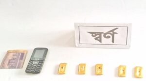 মিজানুর রহমান মিন্টু ,জয়পুরহাট প্রতিনিধি : জয়পুরহাটের পাঁচবিবি উপজেলার পূর্ব উচনা সীমান্ত এলাকা থেকে ৫০ ভরি ৬ আনা ওজনের ৫ টি অবৈধ স্বর্ণের বার উদ্ধারসহ মতিয়ার রহমান মিন্টু নামে এক চোরাকারবারিকে আটক করেছে ২০ বিজিবি।আটককৃত মতিয়ার রহমান মিন্টু জেলার পাঁচবিবি উপজেলার পূর্ব উছনা গ্রামের সিদ্দিক মণ্ডলের ছেলে। শনিবার সকালে জয়পুরহাট ২০ বর্ডার গার্ড বাংলাদেশ (বিজিবি) ব্যাটালিয়নের একটি দল স্বর্ণের এ চালানটি জব্দ করে। উদ্ধার করা স্বর্ণের বাজার মূল্য আনুমানিক ১ কোটি ২৮ লাখ ৫৪ হাজার ৯৫৬ টাকা বলে জানিয়েছে বিজিবি।