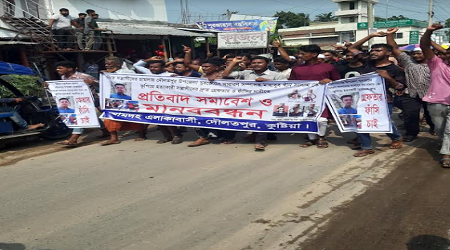 মো. সাইদুল আনাম, কুষ্টিয়া প্রতিনিধি : কুষ্টিয়ার দৌলতপুরে জাসদ যুবজোট নেতা মাহাবুব খান সালাম (৩৮) সন্ত্রাসী হামলায় নিহত হওয়ার ঘটনায় বিক্ষুব্ধ এলাকাবাসী লাশ নিয়ে বিক্ষোভ মিছিল ও সমাবেশ করেছে। বুধবার বেলা ৩টার দিকে উপজেলার আল্লারদর্গা বাজারে বিক্ষোভ মিছিল ও সমাবেশ অনুষ্ঠিত হয়। এরআগে মাহাবুব খান সালামের মরদেহ ময়নাতদন্ত শেষে নিজ গ্রামে নেওয়া হলে এলাকাবাসী ও নিহতের স্বজনরা বিক্ষোভে ফেটে পড়ে। পরে তারা লাশ নিয়ে আমদহ গ্রাম থেকে বিক্ষোভ মিছিল বের করে। মিছিলটি আল্লারদর্গা বাজার প্রদিক্ষণ শেষে আমদহ গ্রামে গিয়ে শেষ হয়। সেখানে সংক্ষিপ্ত সমাবেশে বক্তব্য রাখেন, নিহত সালামের ভাই পাতা খান, রনি খান, লিপু খান ও জাকের পাটির নেতা আবুল কালাম লস্কর এবং কেন্দ্রীয় জাসদের সাংগঠনিক সম্পাদক ও জেলা জাসদের সাধারণ সম্পাদক আব্দুল আলীম স্বপন।