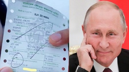 আন্তর্জাতিক ডেস্ক : বাংলাদেশ রেলওয়ের একটি টিকিট সামাজিক যোগাযোগমাধ্যমে ভাইরাল। তা হবারই কথা। কারণ এ টিকিটে গত ৫ মে ধূমকেতু এক্সপ্রেসে চড়ে রাজশাহী থেকে ঢাকা ভ্রমণ করে গেছেন রাশিয়ার প্রেসিডেন্ট ভ্লাদিমির পুতিন। বিষয়টি সত্যি না হলেও টিকিট তাই বলছে। ভাইরাল সেই টিকিট নিয়ে সামাজিক যোগাযোগমাধ্যমে চলছে রসিকতা।